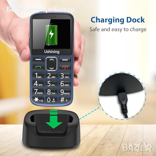 SOS функция: Бутон за бързо набиране на до 5 спешни контакта, идеален за възрастни и хора с нужди.