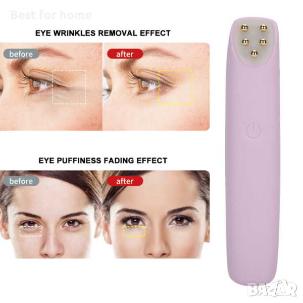 Вибрационен масаж: 8000 пъти/минута високочестотна вибрация, бързо масажирайте кожата на очите, насърчавайте усвояването на продуктите за грижа за кожата и оформяйте красиви очи.
