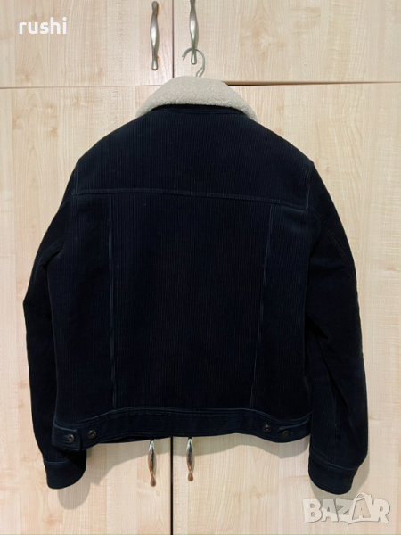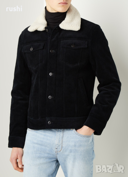 Мъжко яке MANGO: Размер XL. Яке от рипсено кадифе с подплата от изкуствена агнешка кожа. Цвят - Наситено тъмносиньо. Носен е много малко.
