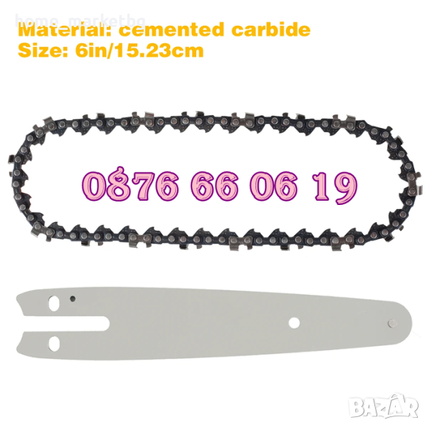 Тип 6: Шина 15 см за акумулаторна резачка за дърва, акумулаторен трион - 14 лв.