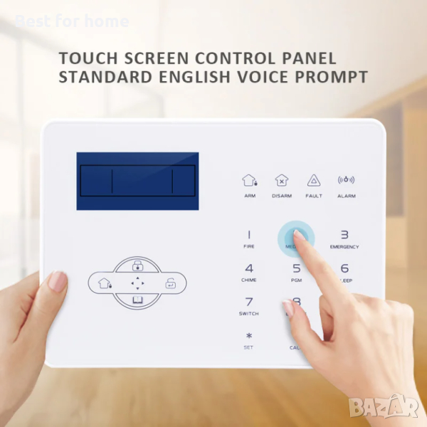 Сензорен ключ за осветление, цифрова клавиатура, сирени, сензор за счупено стъкло, сензор за ниво на водата, датчик за топлина