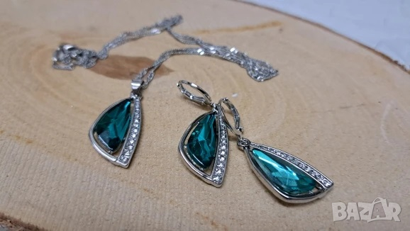Бижутерен комплект - колие с обеци, аквамарин и циркони → Обява 44582105