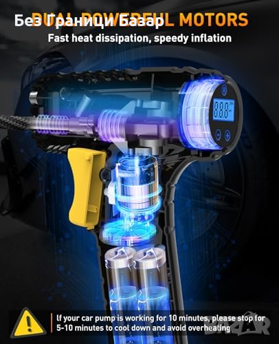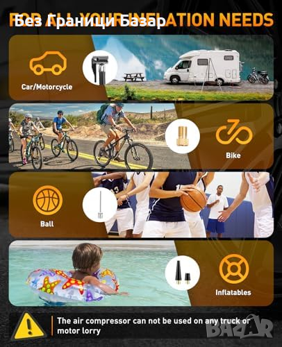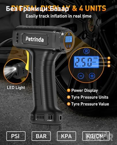 Нов Безжичен Компресор за Гуми с Цифров Дисплей LED Светлина Помпа