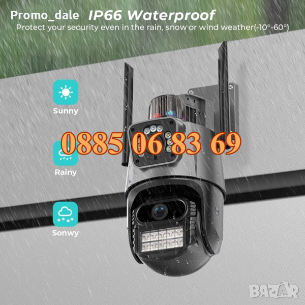 TF карта слот до 128 GB. Криптиране, сигурност, съхранение в облака. Отдалечен преглед чрез приложението iCSee на смартфон.PTZ дистанционно управление.