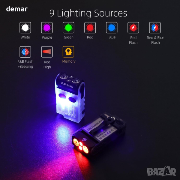 APLOS V20 Малко мощно EDC фенерче с многоцветна COB светлина,