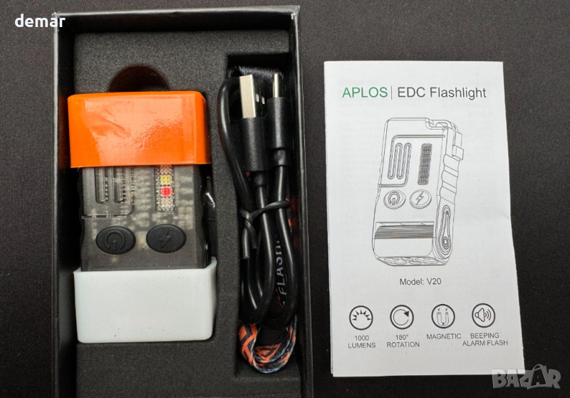 V20 на APLOS, най-добрият EDC фенер с въртяща се на 180° глава, магнитна основа и универсална двупосочна скоба за несравнима адаптивност. Оборудван с два нови абажура за къмпинг и стилен ремък, това е единственото фенерче, от което се нуждаете при всеки сценарий. С макс. 1000 лумена и 100-метрово разстояние, той предлага мощна яркост в компактен дизайн. V20 разполага със странична светлина COB с 5 цвята и звуков сигнал за спешни случаи. С тегло само 57 g, той е идеален за употреба в движение и може лесно да се прикрепи към ключодържател или шапка. Плюс това, мощният магнит в основата осигурява осветление със свободни ръце за безпроблемно изживяване по време на ремонти или проверки. Изживейте еволюцията на осветлението с V20.