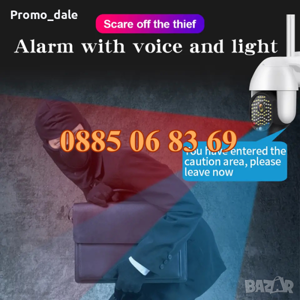 Wifi Full HD 1080p 68 LED 320° автоматично въртяща, куполна от ново поколение! ЦВЕТНО НОЩНО ВИЖДАНЕ! Широкообхватна! Перфектно качество и на нощен запис! До 8 пъти ZOOM!