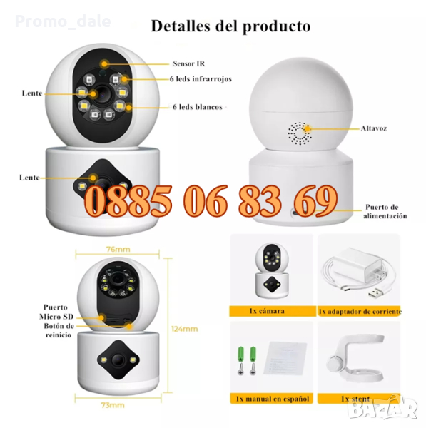 Управление:Отдалечен достъп до камерата чрез мобилно приложение Безплатно приложение за iOS и Android Двупосочно аудио Сензор за засичане на движение с умна аларма Нощно виждане