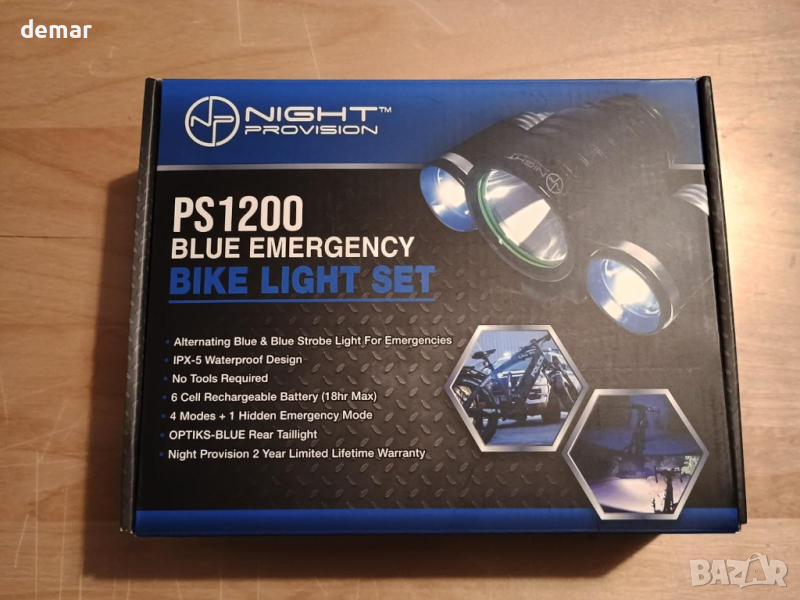 PS1200-BLUE Предна и OPTIKS-BLUE Аварийна патрулна велосипедна светлина