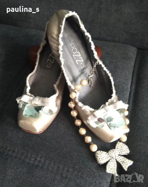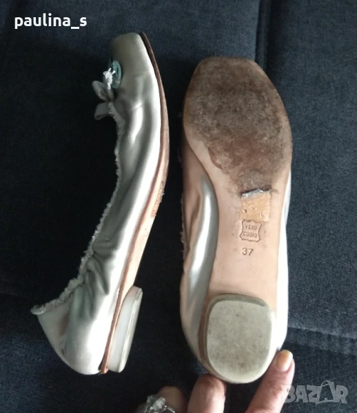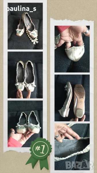 2️⃣. Колаж / "Apepazza" N 37. Цената е крайна 49,99лв. Изумителни обувки тип балеринки, от естествена кожа за салона и коприна отвън. Моделът отпред е като на балериснки
