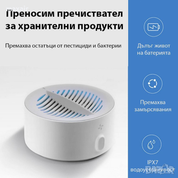 Компактният преносим уред Xiaomi Xiaoda използва електролитно пречистване с йони, което ефективно разгражда вредните вещества в храната. Пречиствателят ефективно премахва остатъци от пестициди и бактерии по плодовете и зеленчуците, както и остатъчните хормони и антибиотици от месото. Чрез този уред за пречистване на храна не се добавят никакви химични елементи, а се използва силата на електролитно йонно пречистване за да можете да подобрите качеството и свежестта на консумираната храна всеки ден!