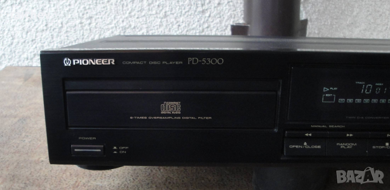 Pioneer PD 5300 – Добре свирещ плейър. Дак – 2 x PCM56P-L – SM5818AP. Оптика – PWY1010. RCA изходи. Frequency response: 4Hz to 20kHz. Signal-to-noise ratio: 104dB. Total harmonic distortion: 0.005%. Channel separation: 98dB.