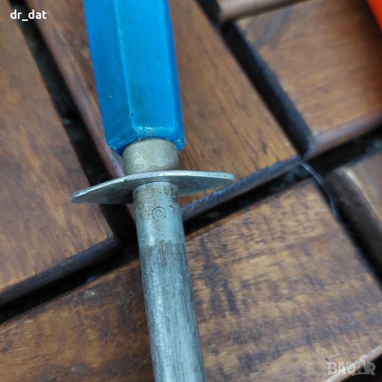 1 и 2 . Стар професионален български масат от соц. време. 34 см. зелена и синя дръжка.