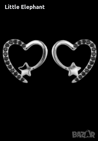 Сребърни обеци колекция"Hearts"със звезди и кристали,black/ново → Обява 44587284