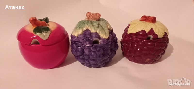 Три броя порцеланови захарници с флорални форми.Може да бъдат закупени поотделно.