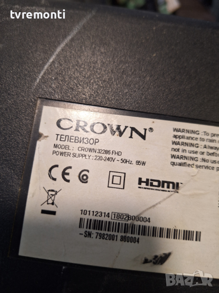 POWER BOARD ,17IPS62, for 32 inc for Crown 32286 FHD DISPLAY VES315UNDB-2D-N11 борда е гарантирано работещ Демонтиран от Телевизор Crown модел 32286 FHD със счупен дисплей VES315UNDB-2D-N11 тесвана от нашия техник