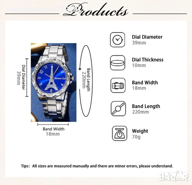 • Комплект бижута: Часовникът е придружен от красив комплект бижута, което подобрява цялостната му естетическа привлекателност и го прави идеален подарък.