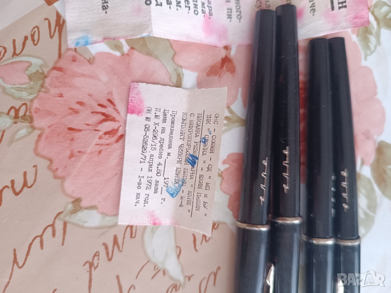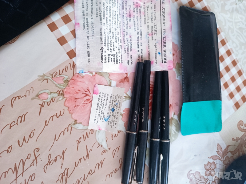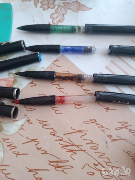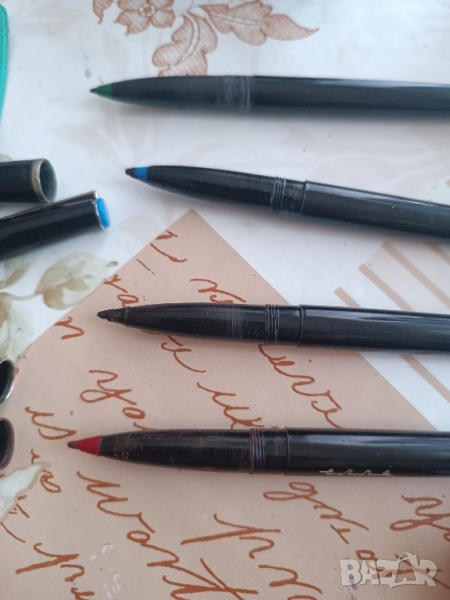 Състояние отлично видно от снимките. На едната писалка капачката е пукната.