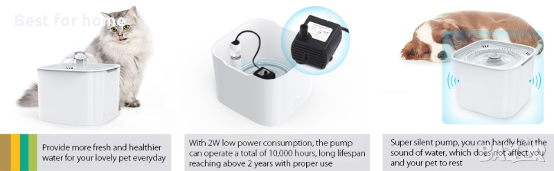 Супер тиха помпа, почти не можете да чуете звука на течаща вода, което не пречи на вас и вашия домашен любимец да си починете.