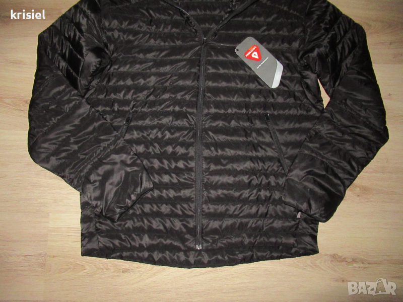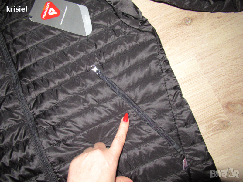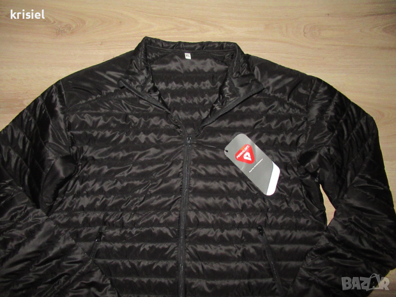 Якето е ново,с етикет.Отговаря на номер М.Супер олекотен и хубав модел.Вталена кройка.Закопчава се с цип.С два джоба отстрани.Размерите са:дължина--67см,гръдна обиколка-120см,ханш-110см