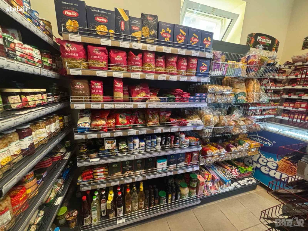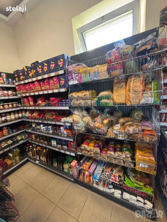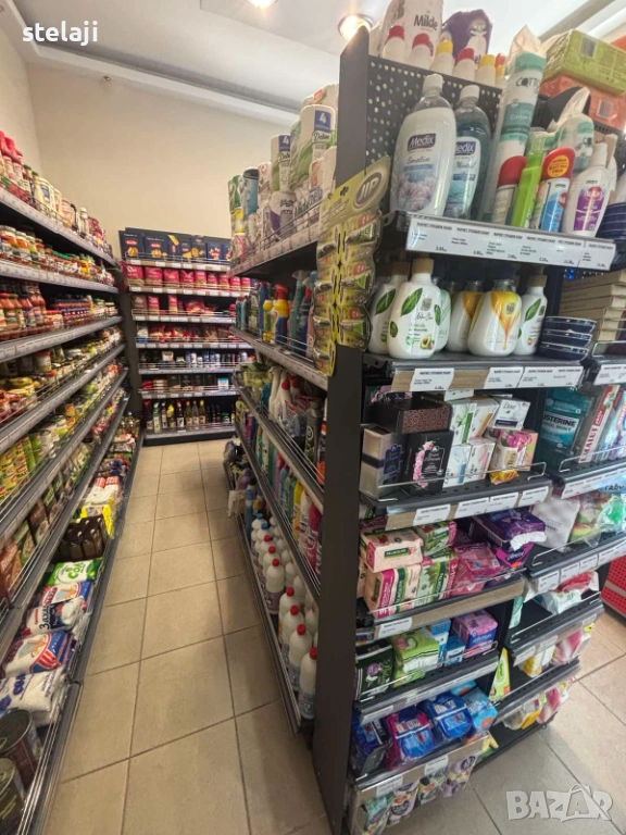 Стелажите са модулни – можете да добавяте рафтове и да променяте височините им според стоката.