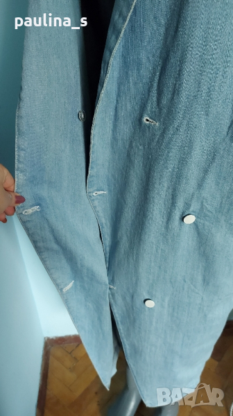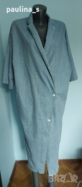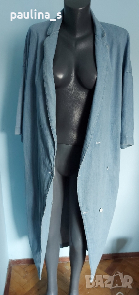 1️⃣. M / 2XL - "Asos". Уникално дънково манто. Цената е крайна, без пазарлъци 25евро. Трапецовидна кройка, с падащи рамене. Джобовете са в страничните тегели. Платът е еластичен и дава възможност да се носи от няколко размера, посочени са. Една бройка е, без дефекти, като ново.