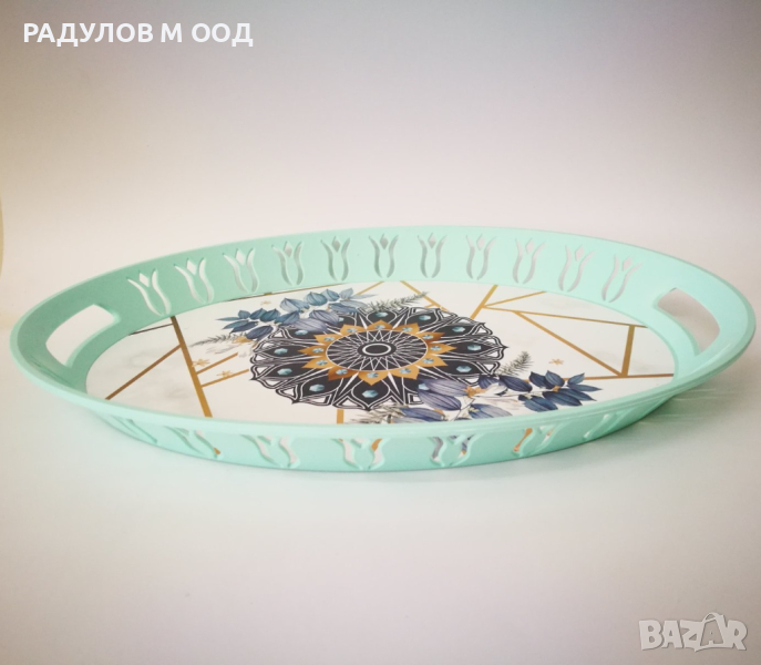 Поднос елипса с дръжки, различни декори / 200086