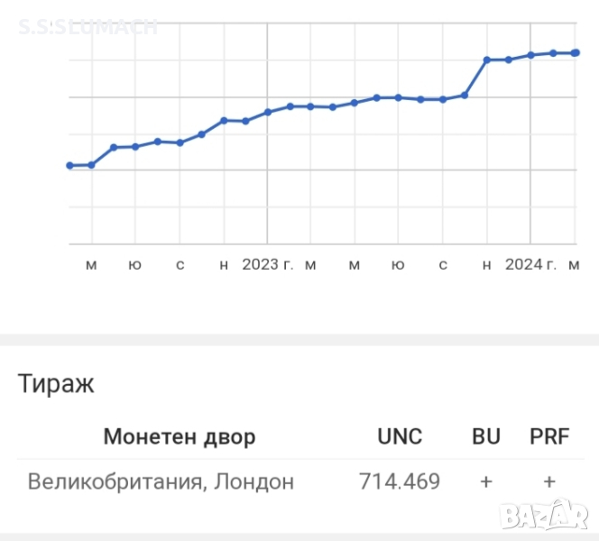 ЦЕНАТА НА ТАЗИ КОЛЕКЦИОНЕРСКА ВЪЗПОМЕНАТЕЛНА МОНЕТА РАСТЕ ПОСТОЯННО...(вижте графиката).