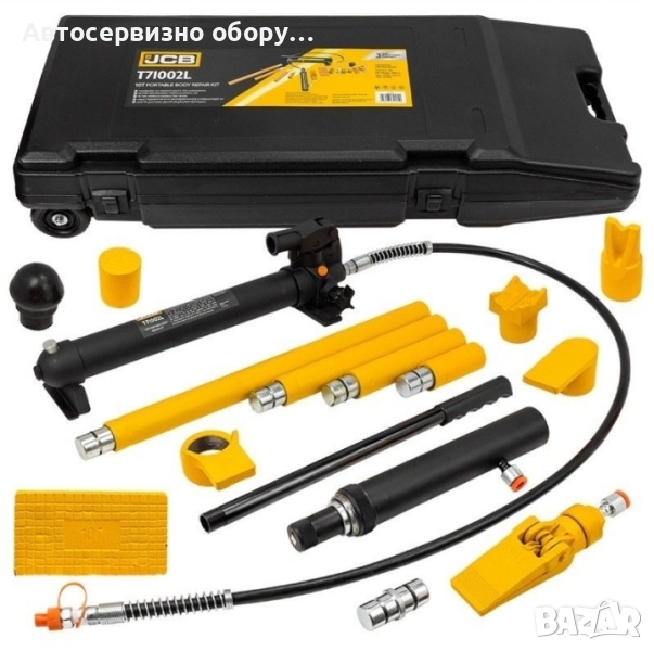 Хидравлична разпъвачка за автомобили JCB има капацитет 10 т, като се състои от 16 части.
