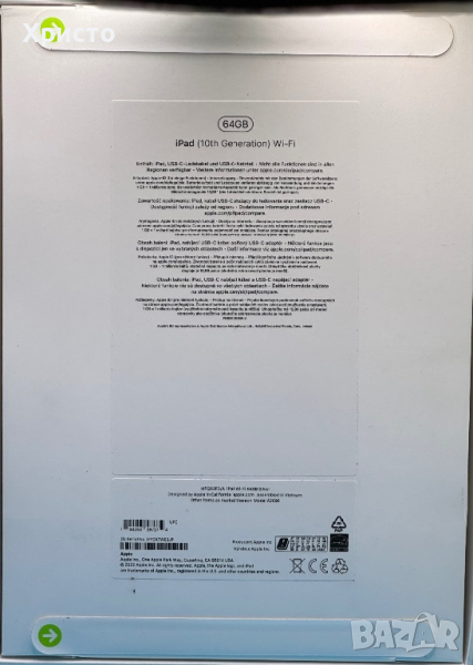 Съдържание пакет 1 x USB-C кабел за зареждане 1 x Apple iPad 1 x USB-C 20W захранващ адаптер