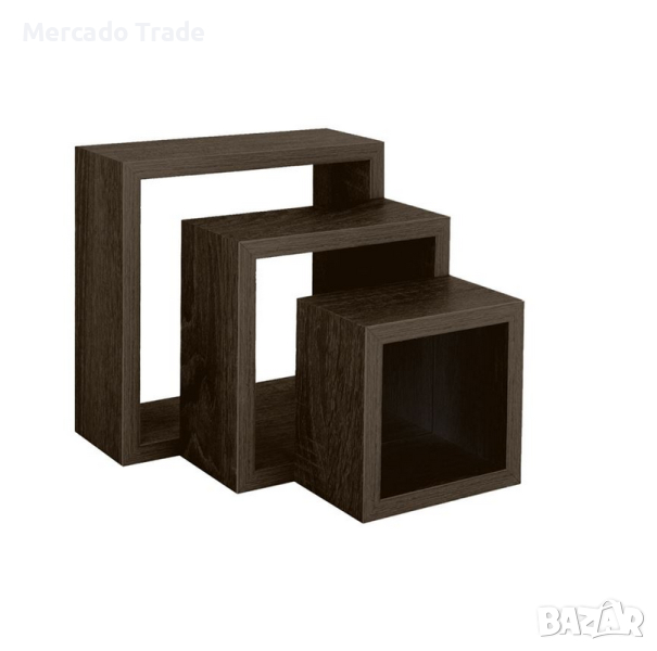 Комплект декоративни рафтове Mercado Trade, За стена, 3бр., Квадрат, Тъмнокафяви