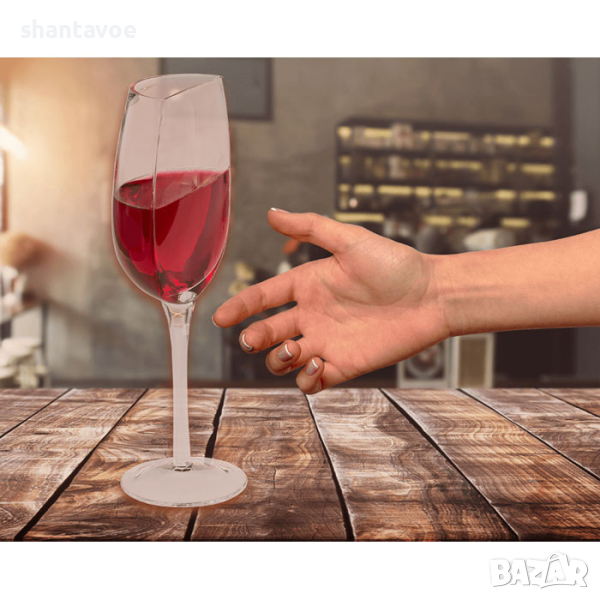 е нестандартна – не е обикновена, а ПОЛОВИН чаша за вино;