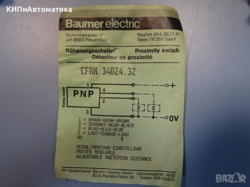 Капацивен датчик Baumer Electric CFRK 34D24.32 proximity switch → Обява 44602883
