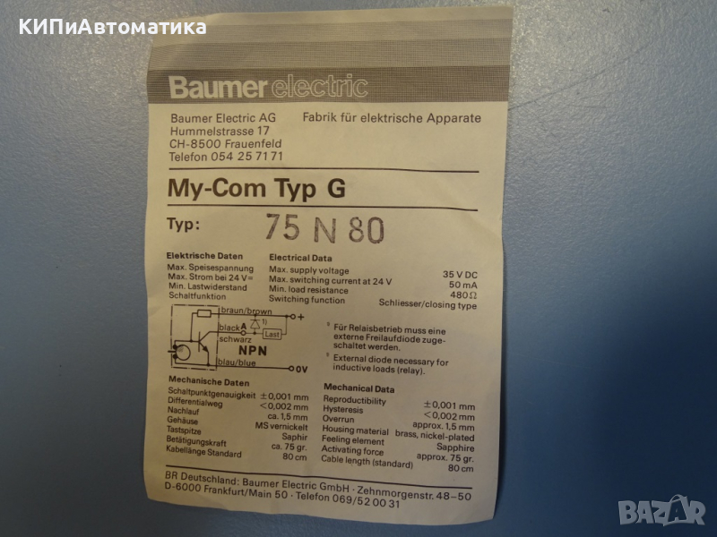 модел: Baumer Electric MY-COM typ G 75N80 precision switch