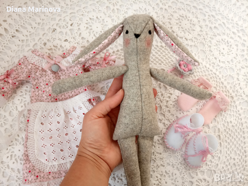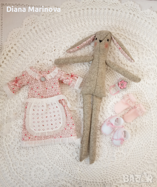 Зайче ръчна изработка с рокля и обувки, подарък за момиче, подарък за дете → Обява 44603723