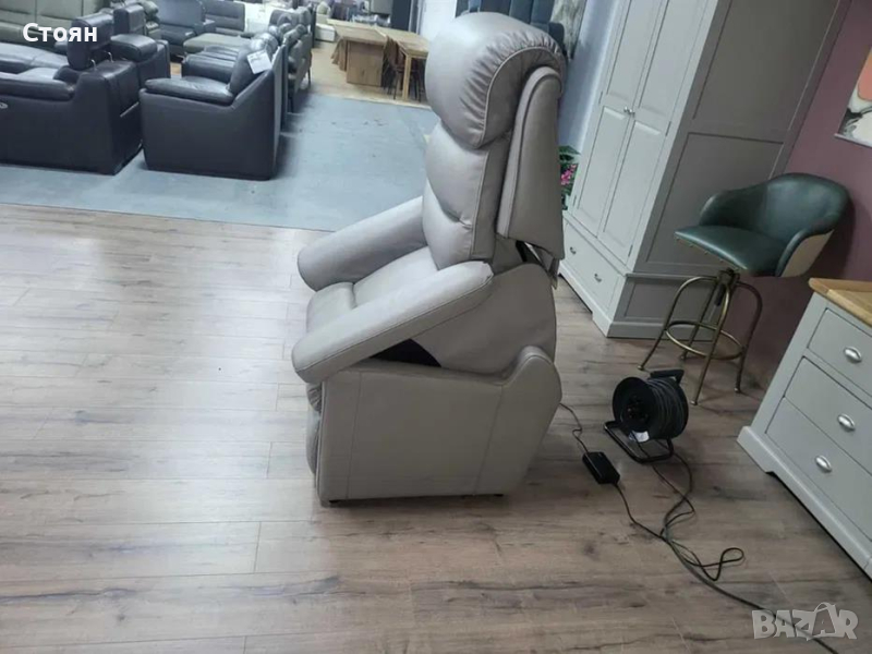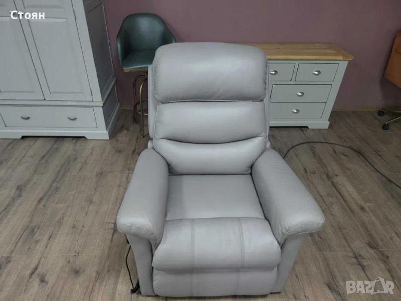 Сив кожен фотьойл за възрастни хора с ел. релакс механизъм La-z-boy → Обява 44605844
