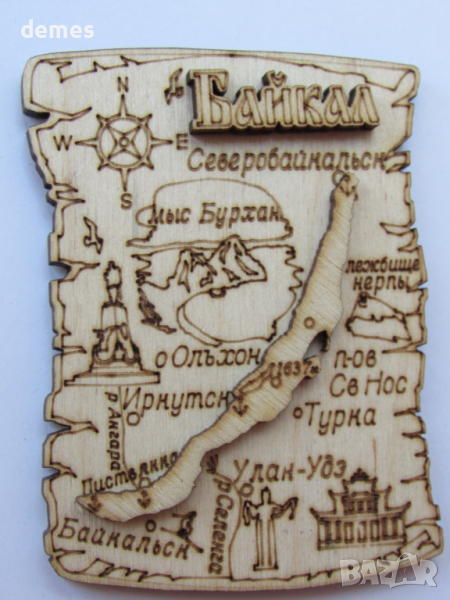 Автентичен 3D дървен магнит от езерото Байкал, Русия → Обява 44605976