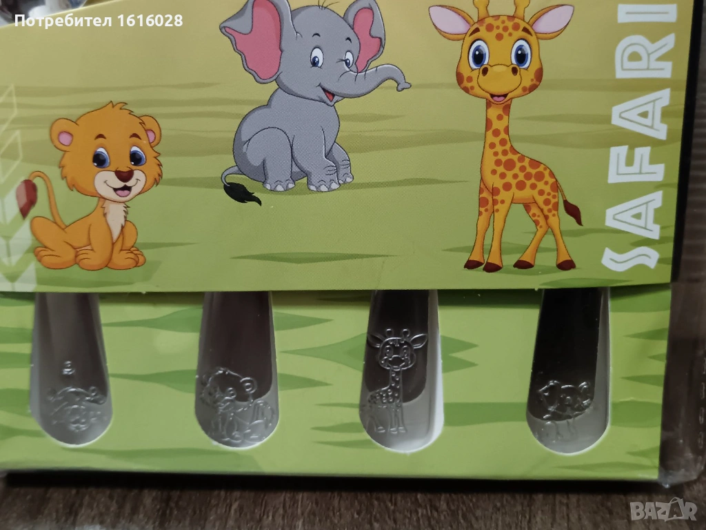 Всяко парче от този комплект от 4 прибора (лъжица, лъжица, вилица и нож) е украсено със сладко сафари животно. Дръжките имат ергономична форма и идеален размер за лесно и сигурно държане. Освен това, за да се предотвратят инциденти, върховете на вилицата и ножа са заоблени, като са перфектно пригодени за деца от 3-годишна възраст.