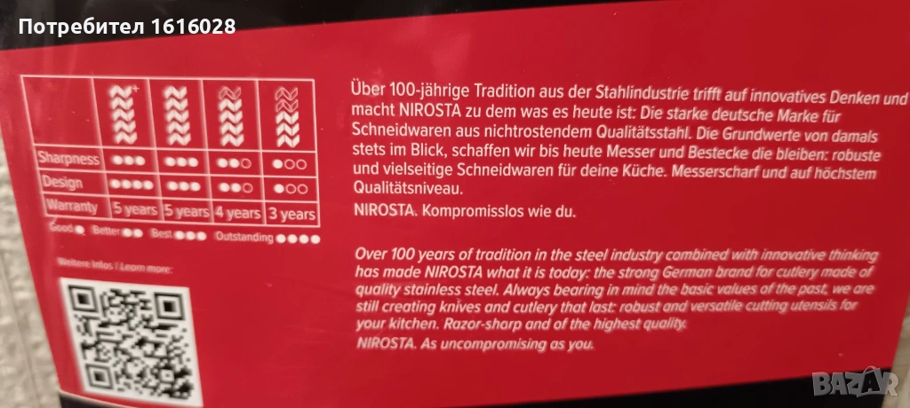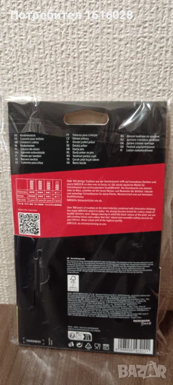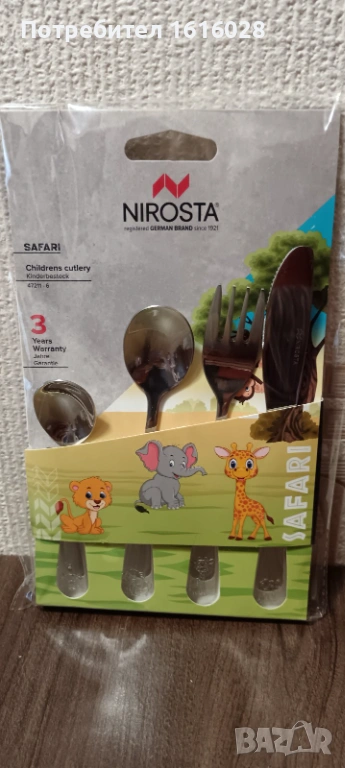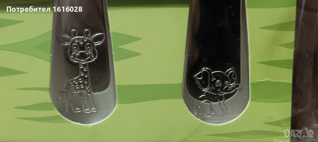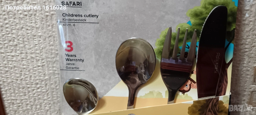 Включени бяха частите: 1 вилица, 1 нож, 1 лъжица, 1 чаена лъжичка.