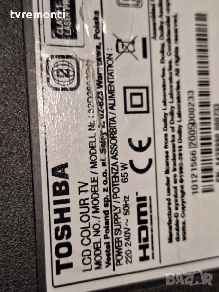 Основна платка - ,17MB211S for 32 inc for Toshiba 32D3863 DISPLAY VES315WNDS-2D-N22​ → Обява 44610785