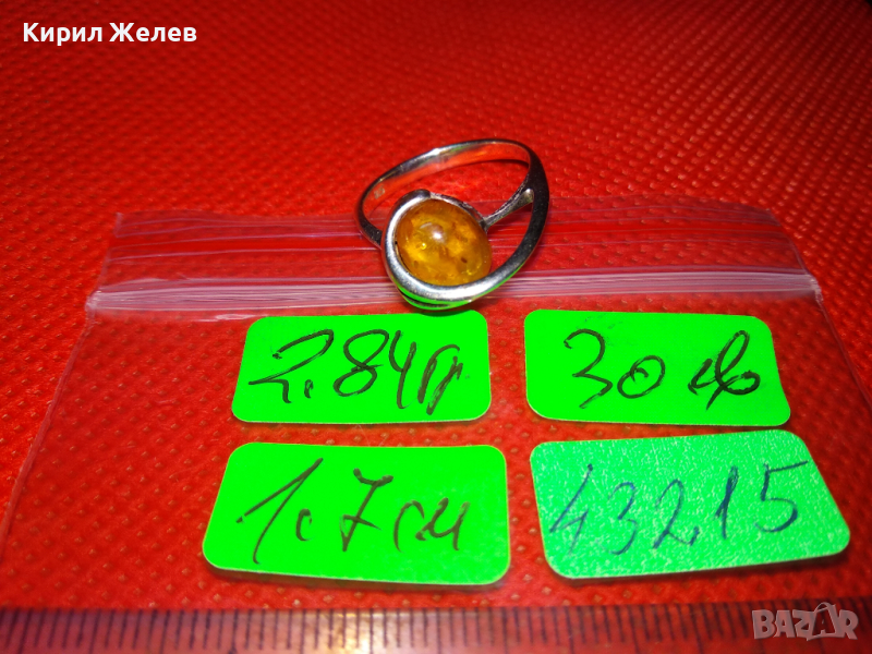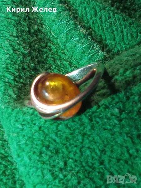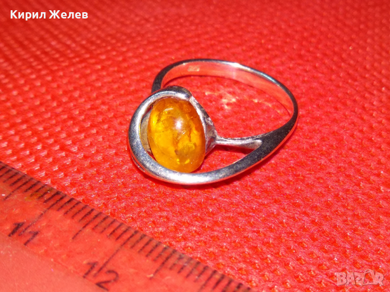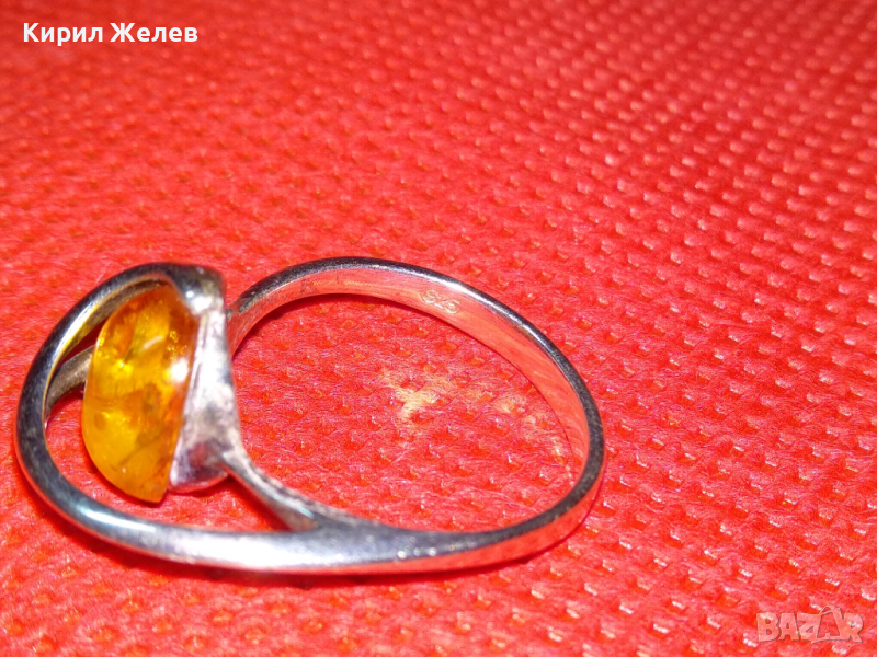СТАР КЕХЛИБАРЕН СРЕБЪРЕН ПРЪСТЕН ВИСОКА ПРОБА СРЕБРО и 100% НАТУРАЛЕН БАЛТИЙСКИ КЕХЛИБАР АМБЪР 43215