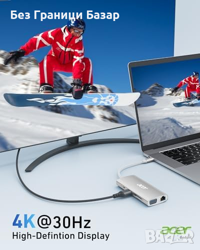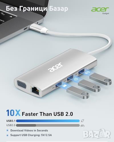 Нов Acer Бърз USB C Хъб 4K HDMI, 5Gbps USB 3.1, PD 100W за MacBook