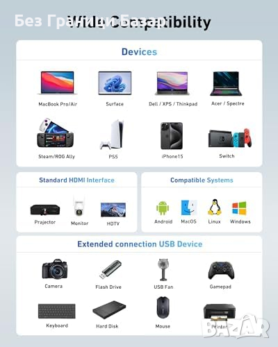 4K*30Hz HDMI: Передава висококачествен видеосигнал на ТВ, монитори и проектори