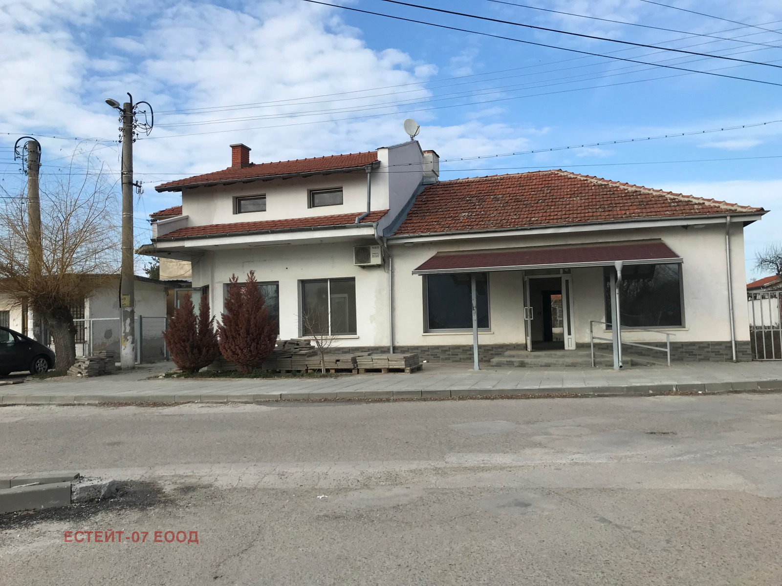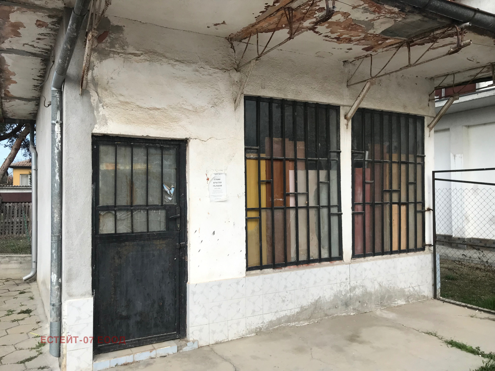 ОФЕРТА 217.Предлгаме Ви две търговски помещения-застроени на калкан ,разположени в два съседни парцела .Първото е със статут на сладкарница -със застроена площ от 75кв.м.разпределени- основно помещение,склад,кухня,още едно сервизно помещение,баня ,две тоалетни.Прилежащ парцел от 676кв.м.Във вторият парцел от 525кв.м.е разположен на калкан с първият магазин със застроена площ от 65 кв.м.-представлява основно помещение,склад,санитарен възел.Помещенията са с височина 3,30м., направена изолация,алуминиева дограма с термомост, плоча(подпокривното простанство може да се използва).Паркиране в двора с плъзгащи врати,още една допълнителна постройка .Имотът се намира на центално място -с лице на две улици ,до училище,с добра видимост -подходящо за много търговски дейности-магазин ,заведение,аптека,козметичен фризьорски салон,както и за преустройство в жилищен имот.Стабилна тухлена сграда с плоча,с изолация,канализация.Обща площ парцел-1201кв.м.,обща застроена площ сграда-140кв.м.За повече информация и огледи 0897913101.