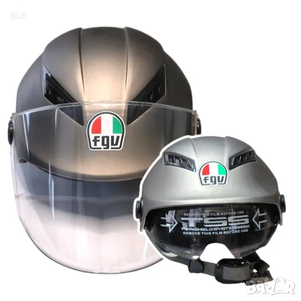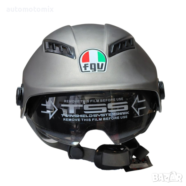 Каска за мотор с очила и визьор, Шлем за скутер, Сив графит- мат