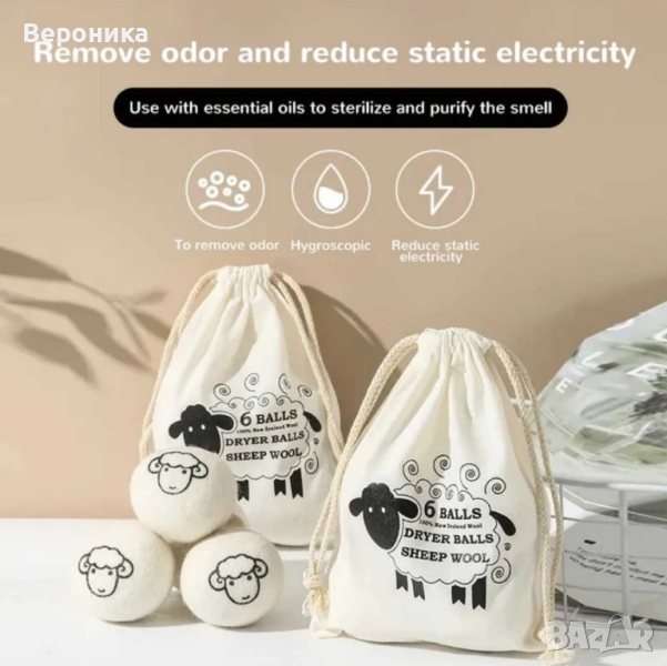 Продавам нови топки за сушилна. 3/6бр. В торбичка.Ето и информация за тях.Използват се в сушилня,подчертавам СУШИЛНЯ!Ако уреда е комбиниран с пералня ,топките се слагат непосредствено преди цикъла на сушене. Топките са изработени от вълна.Вълната има свойството да абсорбира влагата и да действа омекотяващо на дрехите.Когато използвате топките за сушилня не е нужно да използвате омекотител,които съдържа вредни химикали.Самите топки действат омекотяващо и дрехите стават пухкави.Топките спомагат за подобряване на въздушния поток в сушилнята,което съкращава времето за сушене ,като така спестявате и от сметката за ток от 10 до 25%.Спомагат за удължаване живота на дрехите ви и стават по-меки.Чрез вълнените топки дрехите изсъхват по-равномерно.Почти елиминират необходимостта от гладене,просто ги извадете веднага след приключване на цикъла и ги поставете в правилно положение ,за да не се мачкат.Могат да се използват и като ароматизатор.Просто накапете етерични масла върху тях.За София може и лично предаване.