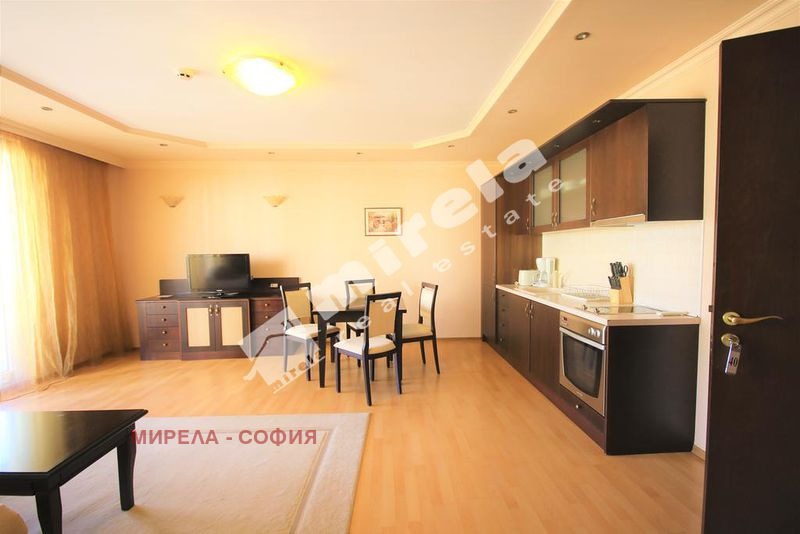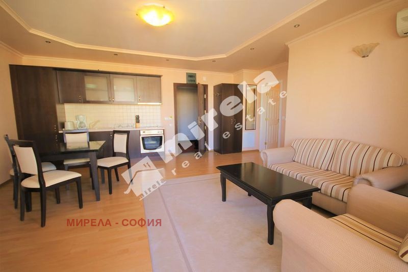 Разпределението на апартамента включва дневна с трапезария и обособен кухненски бокс с излаз към балкон, спалня и баня с тоалетна. Предлага се напълно обзаведен и оборудван.