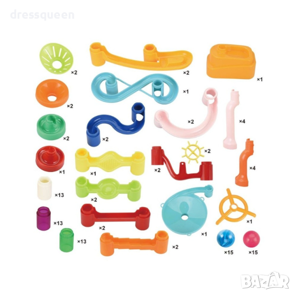 Конструктор за топчета е спираловидна писта, която осигурява безкрайно забавление. Този цветен комплект се състои от много различни цветни елементи, които децата може лесно да подрежда и свободно да комбинира в красиви писти. Освен това на гърба на опаковката има ръководство с пример за писта с всички елементи. Пуснете топчетата и ги гледайте как се търкалят едно след друго. Комплектът съдържа не по-малко от 150 елемента, включително, например, изстрелвачка и топчета за пистата. Размерът е подходящ за малки ръце и помага за развитието на координацията око-ръка.