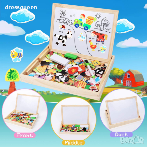 ✅ Магнитна страна: използва се за подреждане на магнитни блокчета и писане с флумастер.