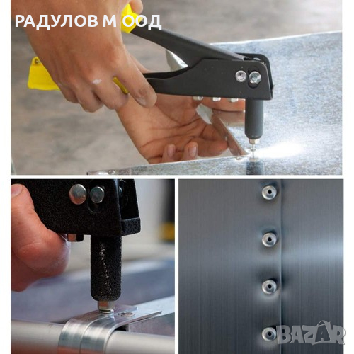 Надежден инструмент за занитване с гайка, за нитове с въртяща се глава, главата може да се завърти на 360 ° под всеки ъгъл. Нитачката разполага с нехлъзгаща се буферна дръжка, материал от термопластична гума (TPR) за максимално прилягане и комфорт; по -дългата глава на нита прави устройството с нитове лесно за притискане, лесно за работа в тесни пространства, три взаимнозаменяеми подложки се съхраняват в дръжката, когато не се използват.